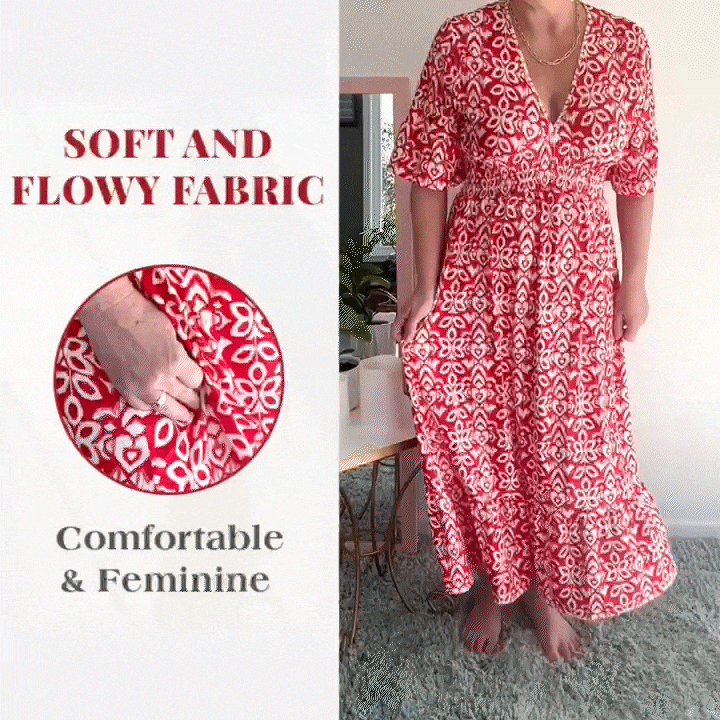 💞Lezser hosszú ruha mintával és V-nyakkal🌸