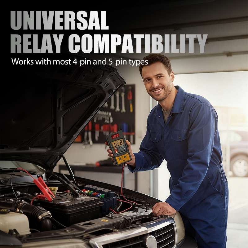 UNIVERZĂLIS KOMPATIBILITĂS â A maximĂĄlis sokoldalĂșsĂĄg Ă©rdekĂ©ben terveztĂ©k, ez a tesztberendezĂ©s univerzĂĄlisan kompatibilis a legtöbb szabvĂĄnyos 4 Ă©s 5 tƱs automatikus relĂ©vel. Ez megszĂŒnteti a kĂŒlönbözĆ szakosodott tesztelĆk igĂ©nyĂ©t, biztosĂtva, hogy felkĂ©szĂŒlt legyen kĂŒlönbözĆ diagnosztikai helyzetekre.