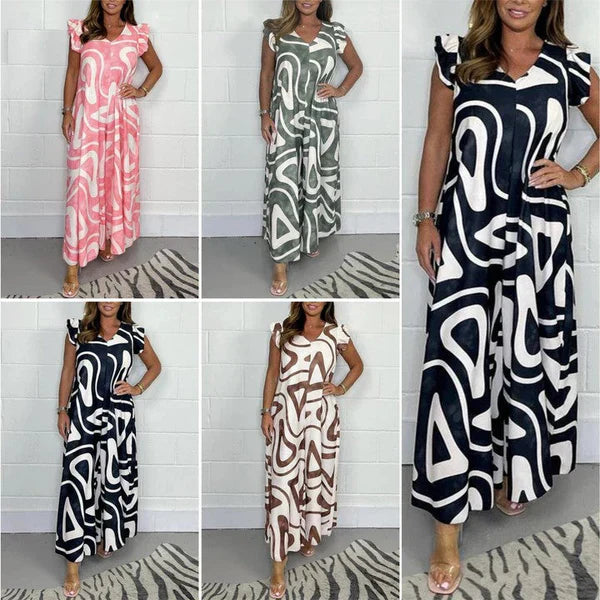 đ„2025 Ăj -đž Pamut geometrikus nyĂĄri szĂ©les szĂĄrĂș Jumpsuit