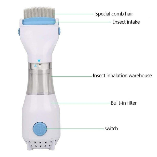 Elektromos tetűeltávolító fésű felnőttek és 3 évnél idősebb gyermekek számára. Használható kutyán, macskán és más háziállaton is. Sörtéi között elektromos töltést hoz létre, amely érintkezéskor enyhe áramütést vált ki, megölve ezzel a tetveket és petéiket. Az elektromos töltése olyan alacsony, hogy a használó semmit nem érez belőle, a készülék használata teljesen biztonságos. Egyetlen mozdulattal számos tetűt ártalmatlaníthat. Tulajdonságainak és kivételes hatékonyságának hála elengedhetetlen megelőző eszköz az otthonában, óvodákban és iskolákban. A hatékonyság növelése érdekében javasolt a tetű ellenes sampont és a megelőző spray használata is.