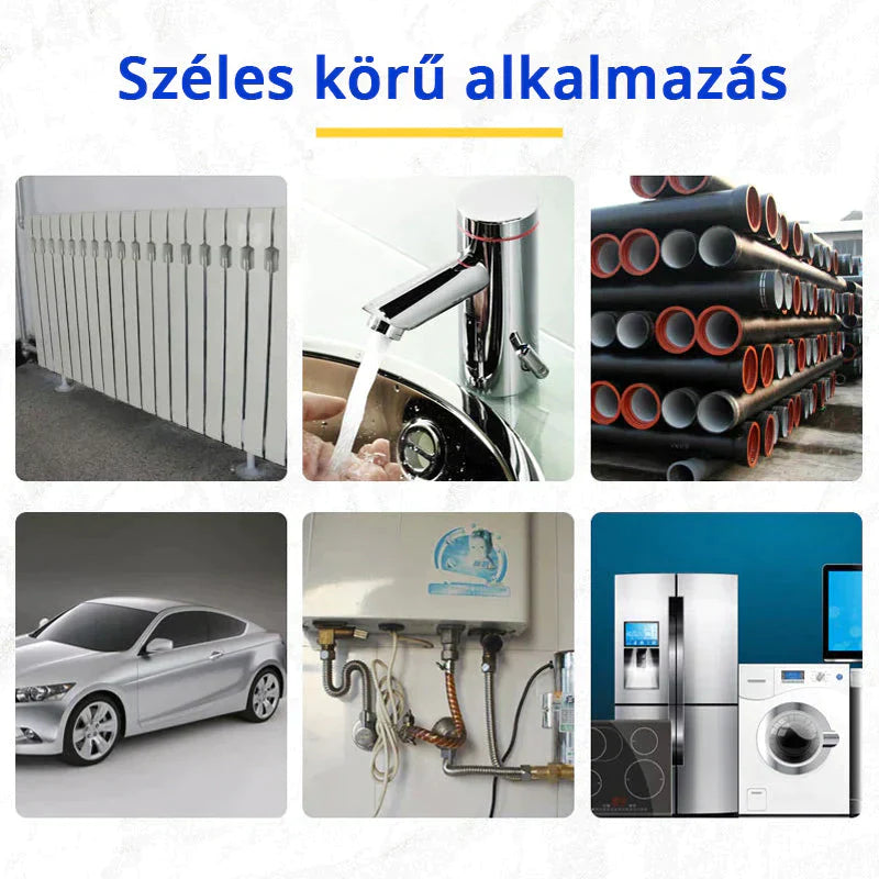 Nincs szükség hegesztésre, gyorsan és egyszerűen kijavít minden repedést, lyukat, rozsdát, hegesztést és egyéb problémákat.