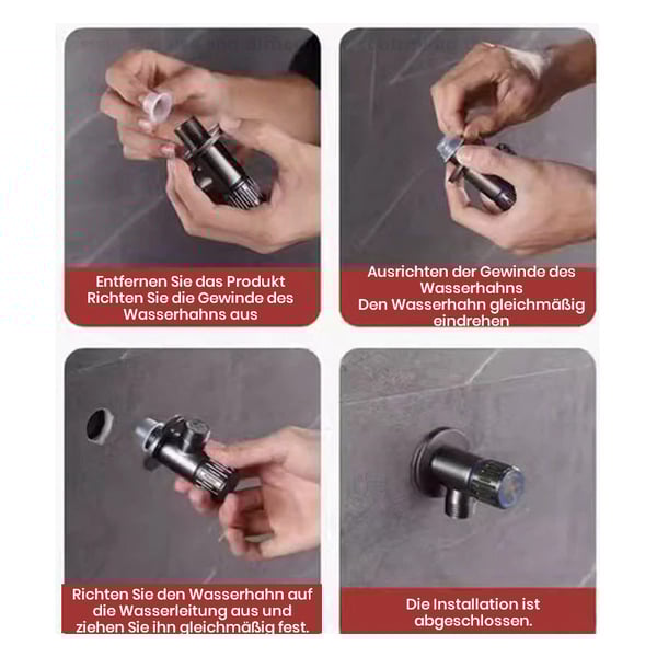 Könnyen felszerelhető: időt takarít meg, egyenletesen tekeredik, és búcsút mond a hagyományos nyersanyagszalagoknak, amelyek időigényesek és nehezen szabályozhatók a vastagságukban. Vegye ki a terméket, igazítsa a csapmenethez, és egyenletesen illessze be a csapmenetbe. Igazítsa a csapot a vízcsőhöz, és egyenletesen húzza meg. A szerelés befejeződött.