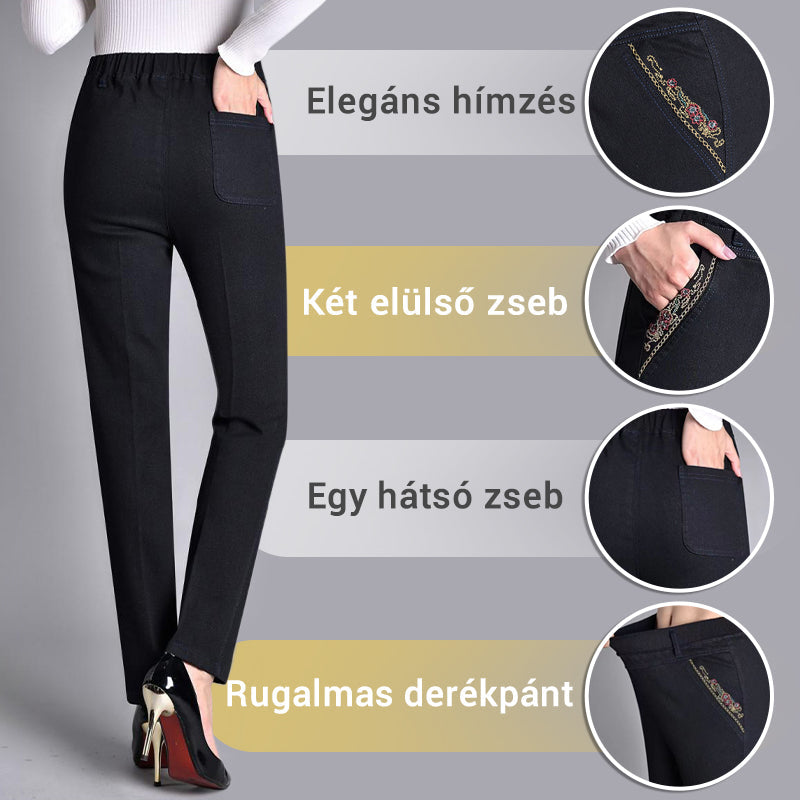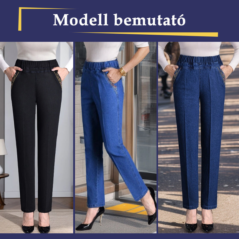 ✨ Női farmer oldalsó zsebekkel és elasztikus derékpánttal