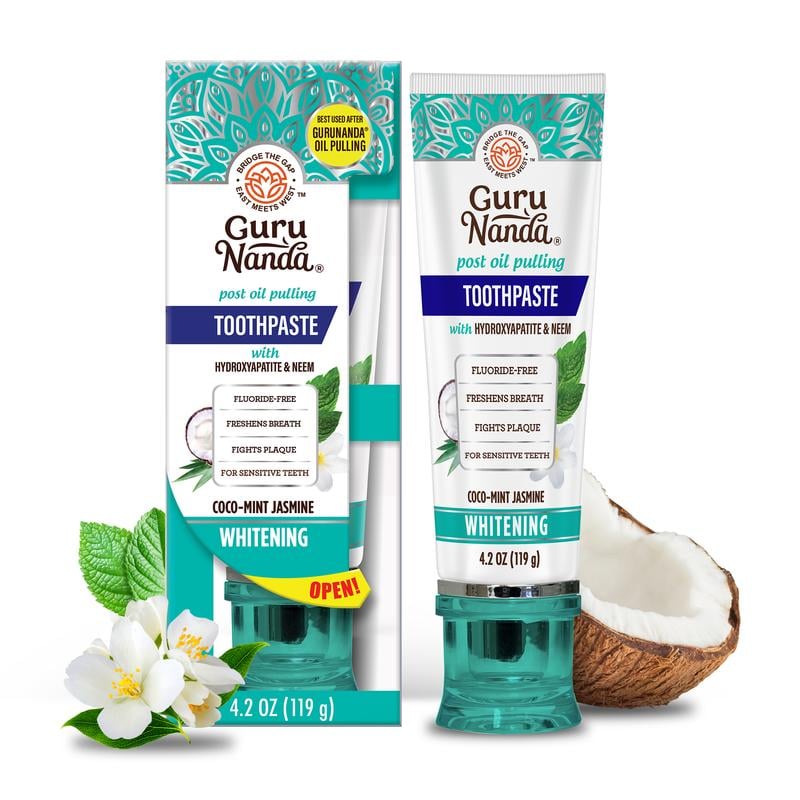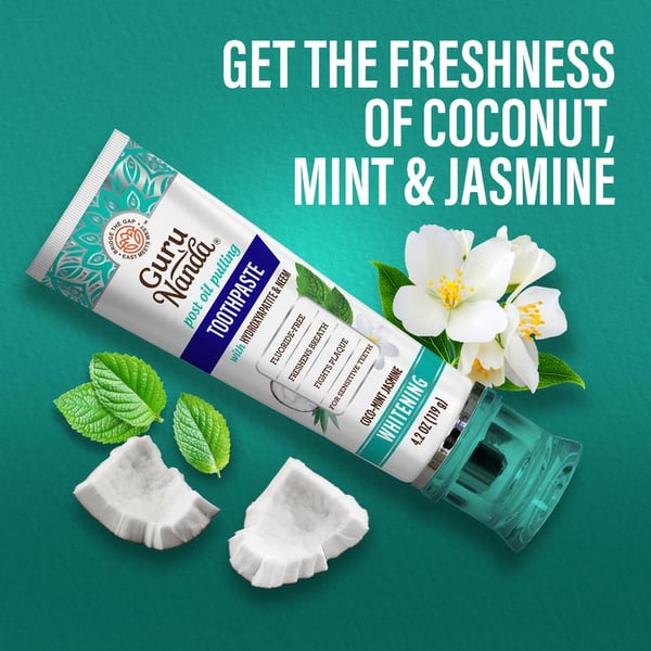 GuruNanda fluormentes, hidroxiapatit, fehérítő fogkrém - frissíti a lélegzetet, leküzdi a lepedéket - CocoMint jázmin neem