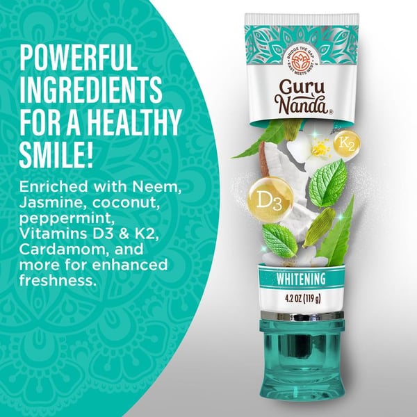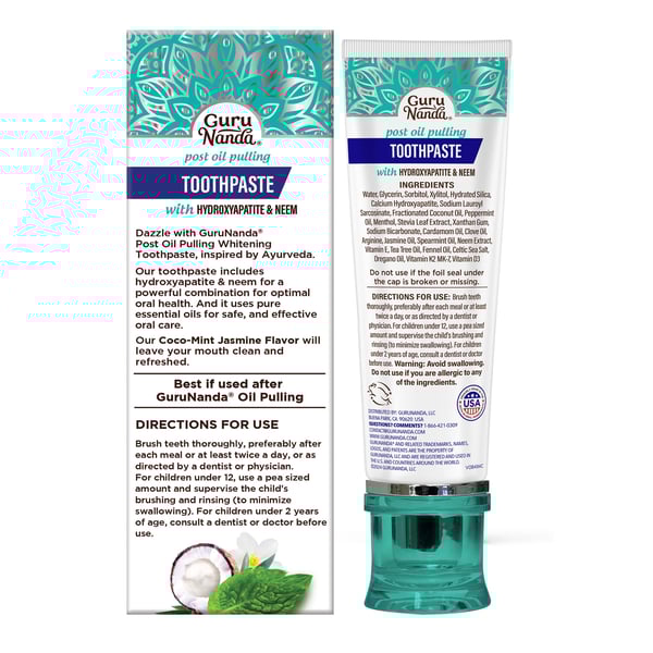HYDROXYAPATITE FORMULA: GuruNanda fogkrémhidroxiapatittalésneem-mel, hatékonyan tisztítjaa fogakat és elősegíti a remineralizációt, javítja a zománc egészségét és ragyogóvá teszi a mosolyát