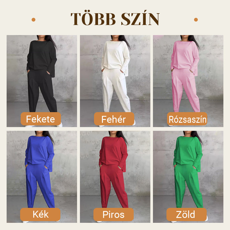 🌹Ajándék 🌸Virágzó Rózsa Nyaklánc🌸🔥Pamut hosszú ujjú kerek nyakú nadrág kétrészes készlet