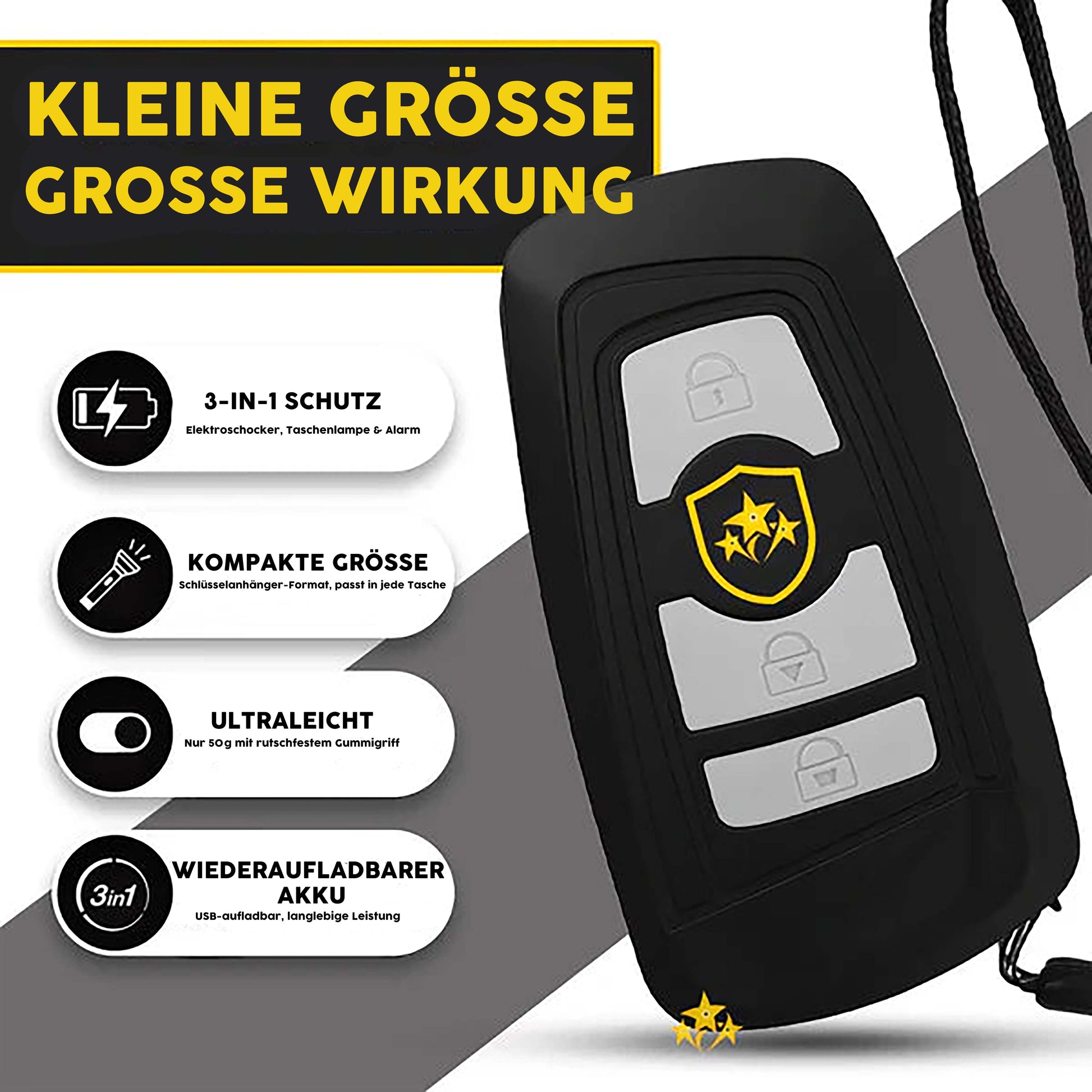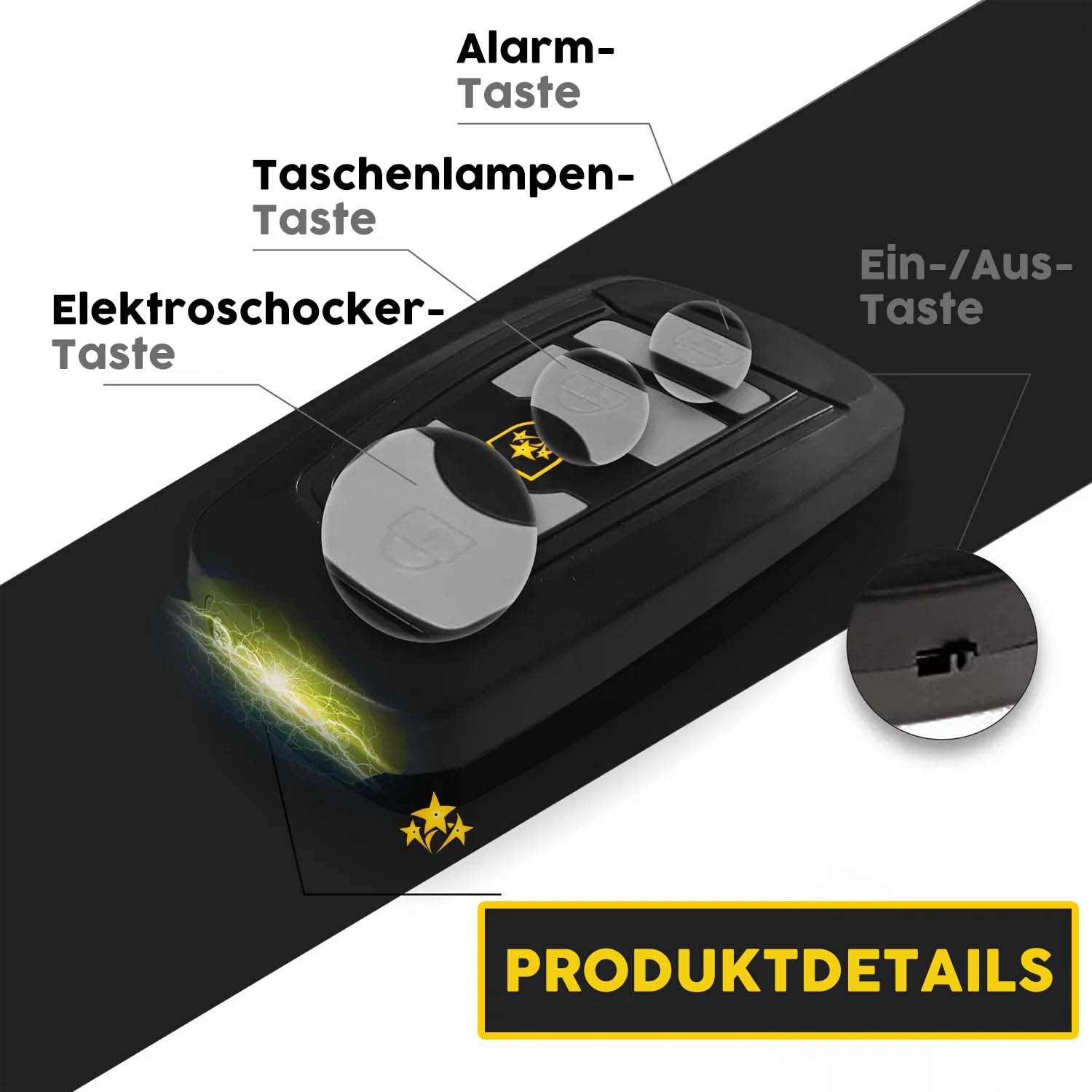 Ez a kompakt, autókulcs méretű sokkoló lenyűgöző 180 000 voltot ad le – többet, mint a legtöbb ma kapható mini sokkoló. Egy rövid kisülés a levegőbe elegendő ahhoz, hogy a legtöbb támadót elriassza. Szükség esetén a nagyfeszültségű elektródák néhány másodperc alatt ártalmatlanná teszik a támadót – még vastag ruházat ellenére is.