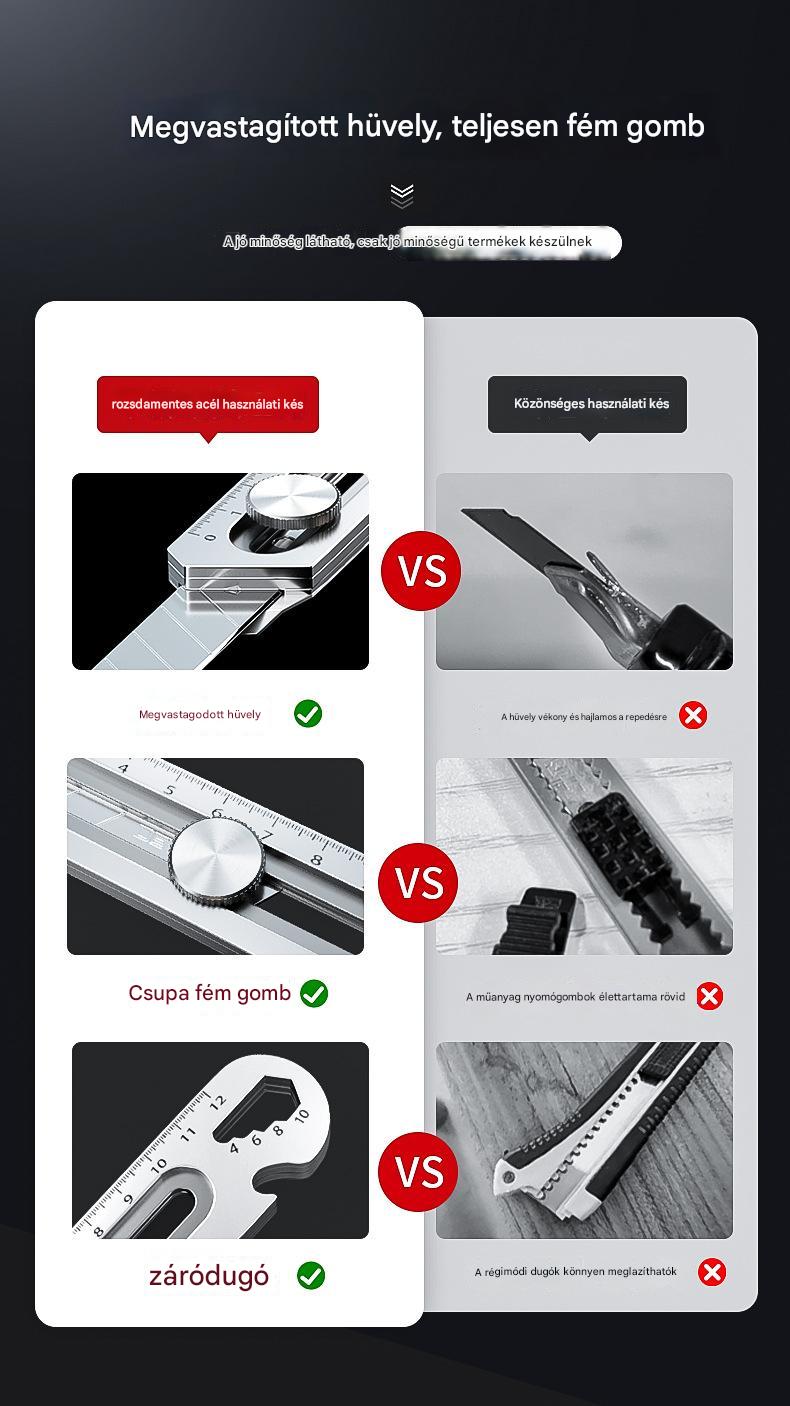 TARTÓS SZERKEZET - Ez a kihúzható kés tökéletes a legkeményebb anyagok vágásához. Nejlon, kötél, laminátum, bőr, gumi, tömítőanyagok és egyebek precíz vágását biztosítja.
