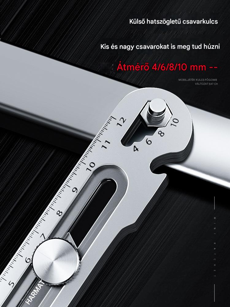 Sokoldalú: 4mm/6mm/8mm/10mm hatszögletű furatok, sörnyitó, vonalzó, stb. Többfunkciós és praktikus eszköz családja és barátai számára!