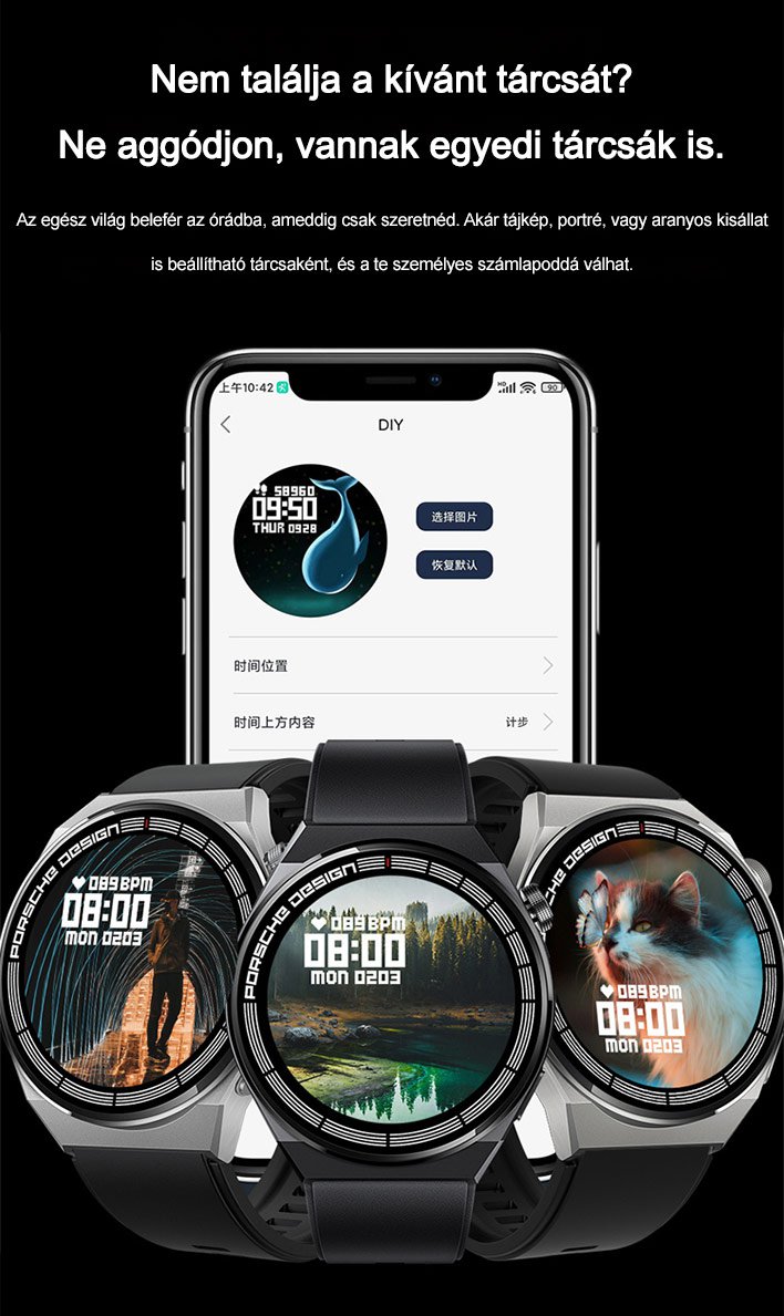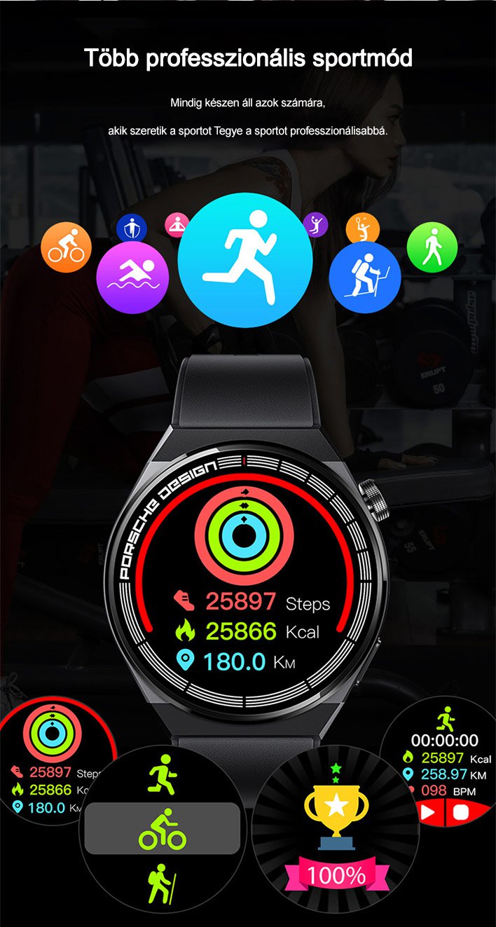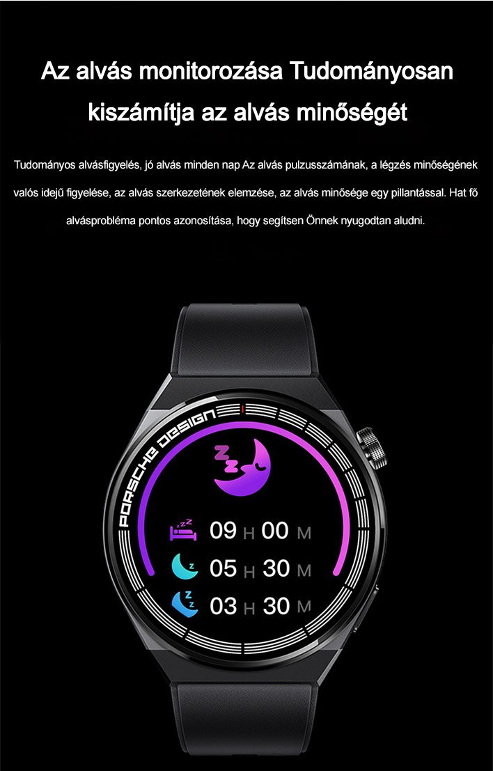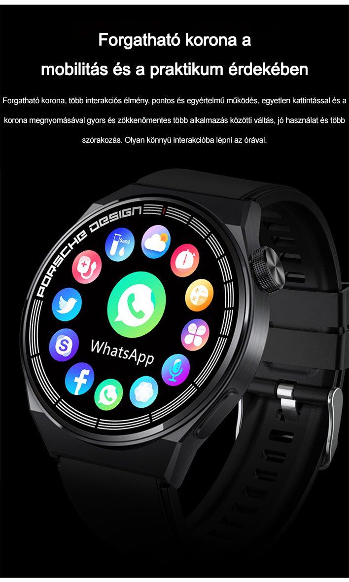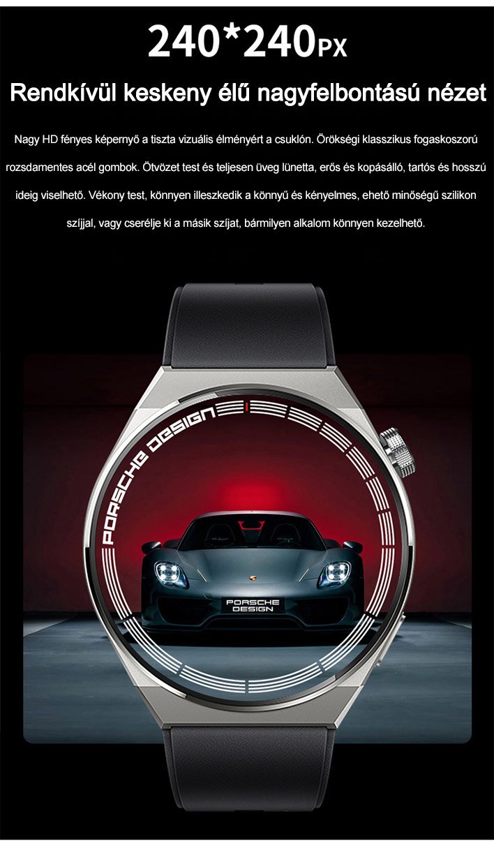 Az óra és a Porsche Smart Wear nem csak egy óra, hanem az Ön személyes komornyikja is, amely mindössze 1 másodperc alatt képes pontosan követni a vércukorszintet, a pulzusszámot, a vérnyomást, a pulzusszámot és a testhőmérsékletet. Mindig figyelje az egészségét.