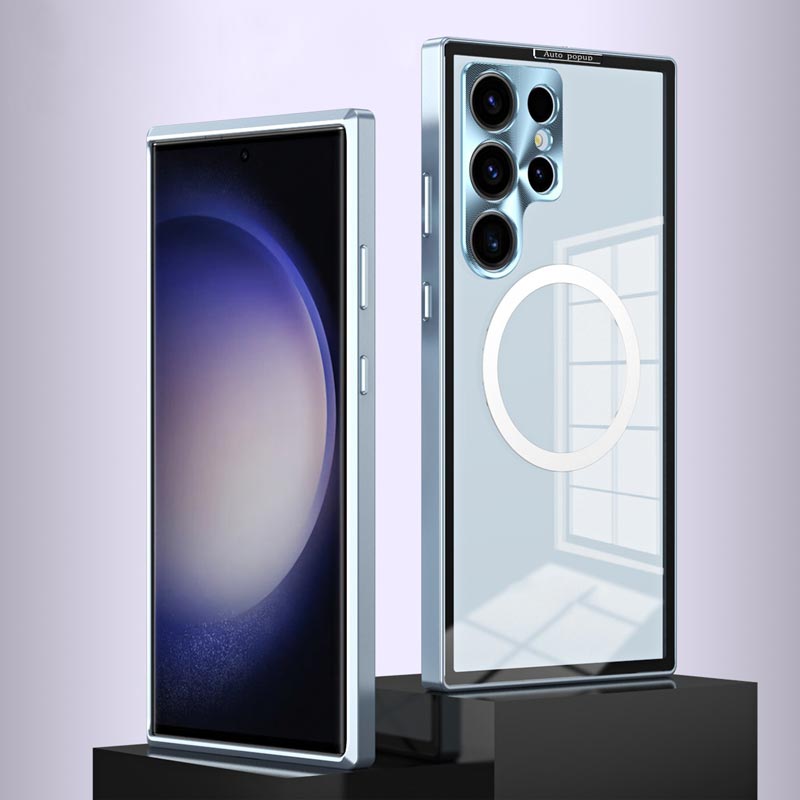 Upgrade luxus Auto Popup fémkeret és mágneses telefon lencsetakaró a Samsung S23/S22 sorozathoz